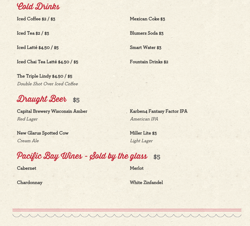 - Juices: Try the Thornton Melon or Arnold Poindexter, each bursting with flavor at $6.00.